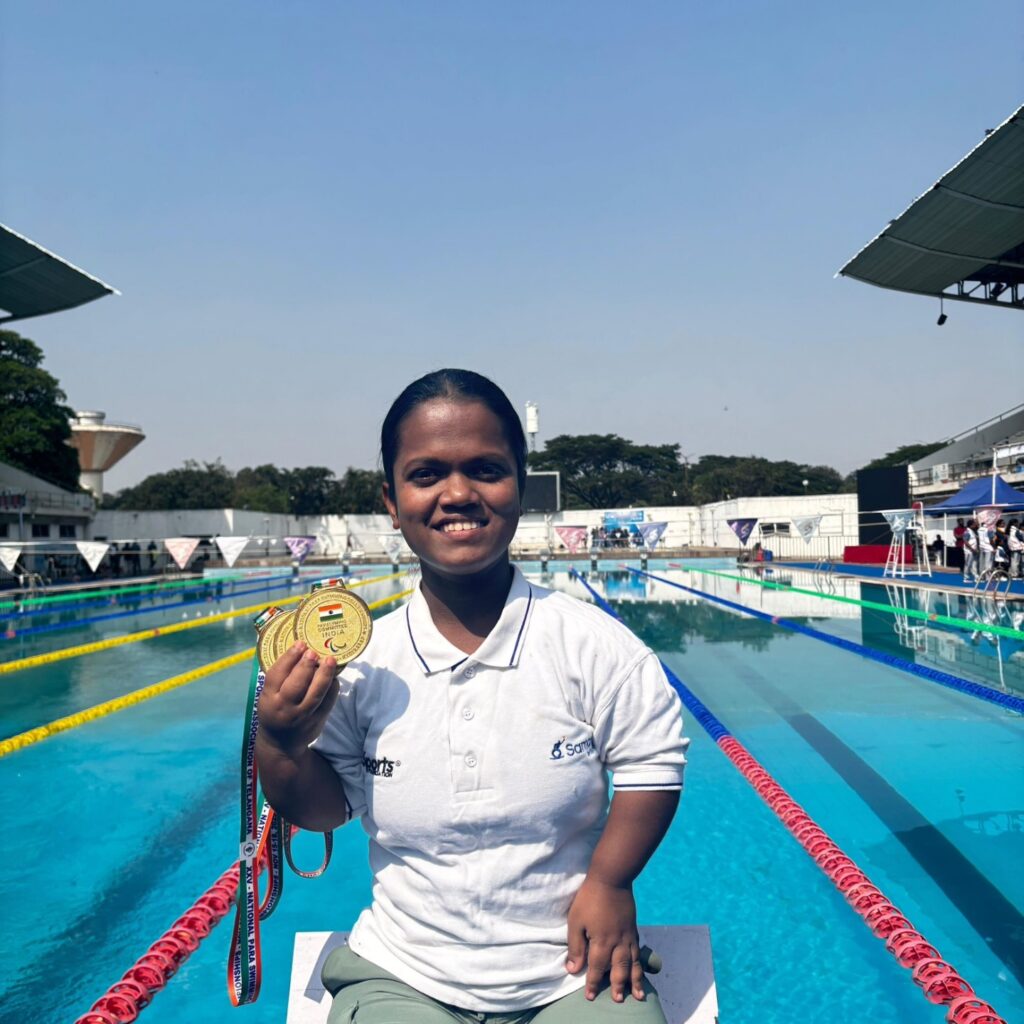 – Karthik, in his debut under the Para Champions Programme (PCP), won three golds in the 50m freestyle, 100m butterfly, and 200m IM. ![]()