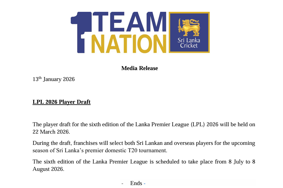 The player draft for the sixth edition of the Lanka Premier League (LPL) 2026 will be held on