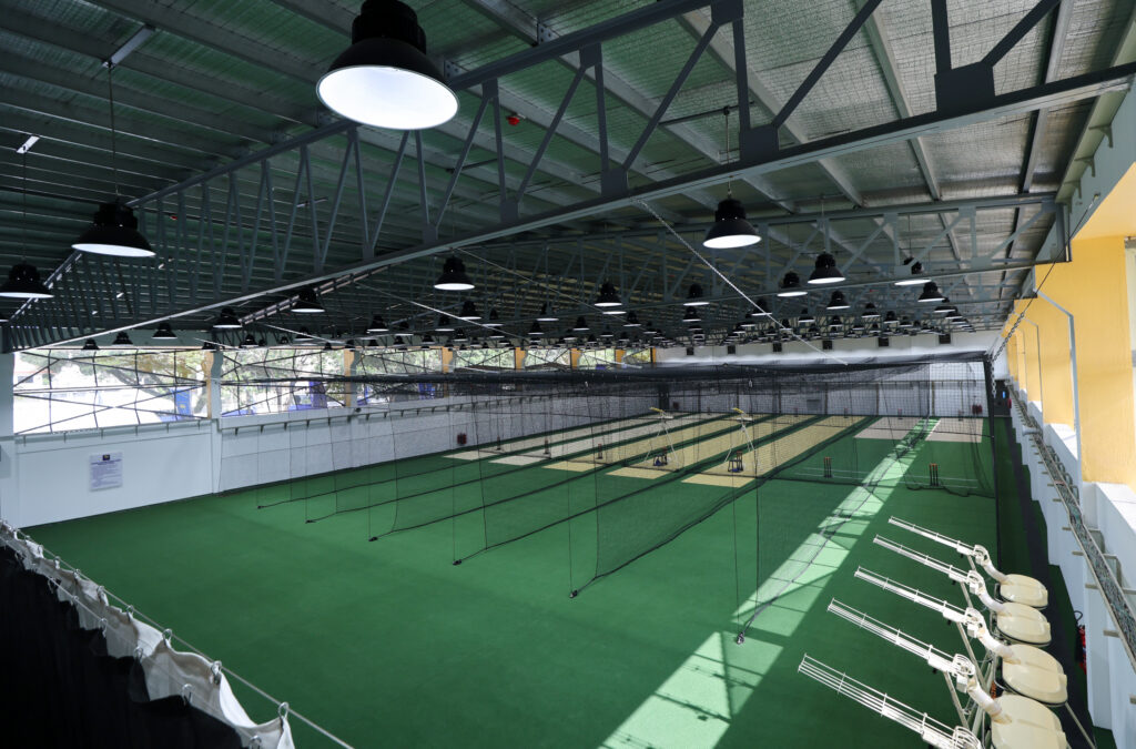 The state-of-the-art, seven-wicket indoor facility has been built to international standards and comprises two wickets dedicated to Spin bowling, two wickets for Fast bowling, and three general-purpose wickets.