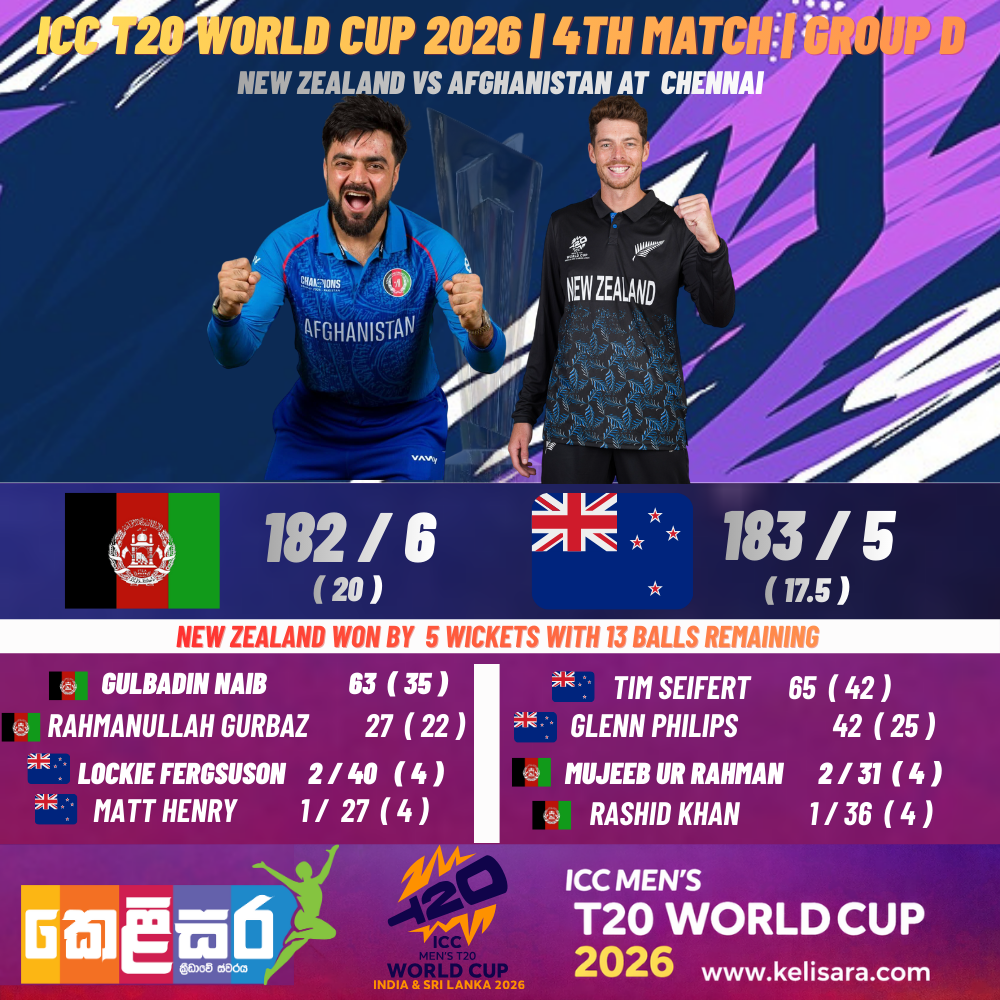 Afghanistan’s innings was anchored by Gulbadin Naib (63), giving them a competitive total. In reply, Tim Seifert’s aggressive 65 and Glenn Phillips’ 42 laid the foundation for the chase, with Mitchell Santner and Daryl Mitchell seeing New Zealand home.